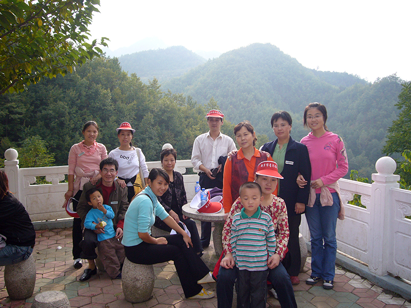 部分員工在洛陽巒川的山峰臺上小憩合影